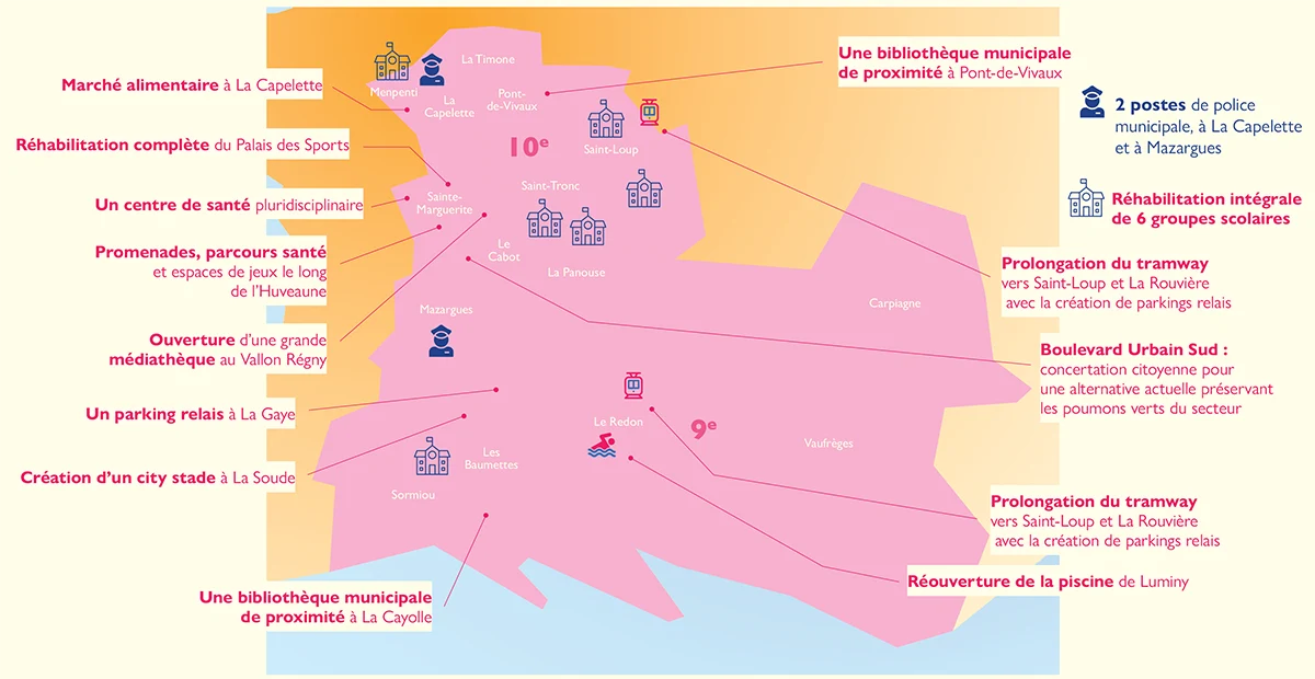 - Implantation d'un poste de police municipale dans chaque arrondissement, à La Capelette et à Mazargues